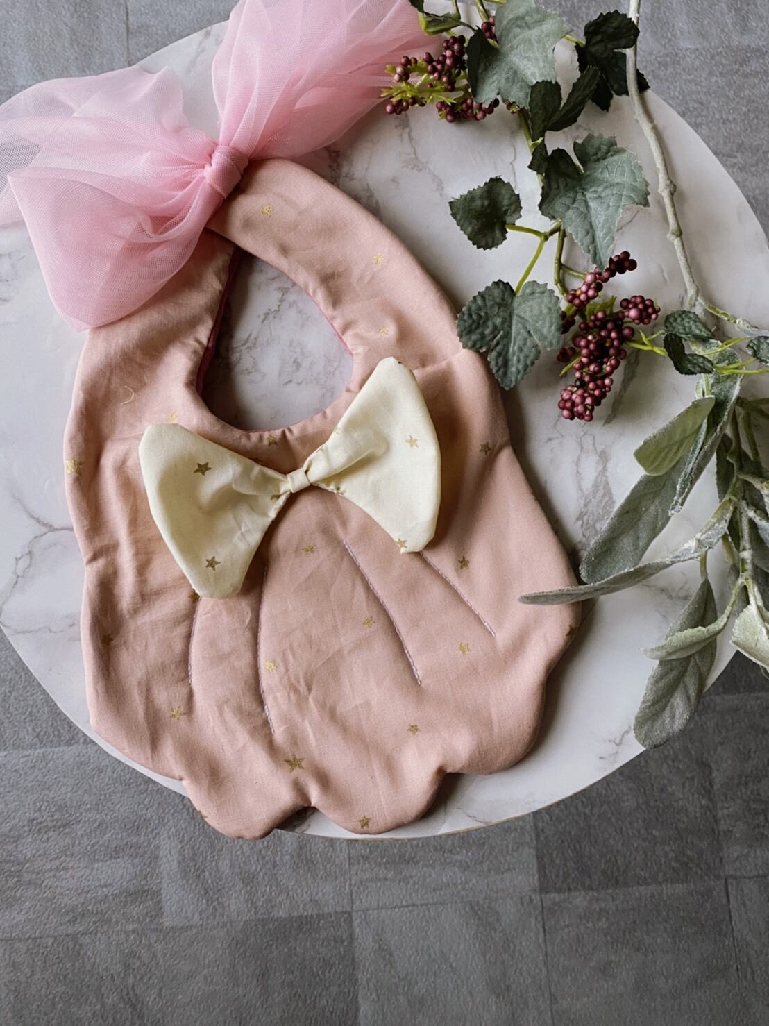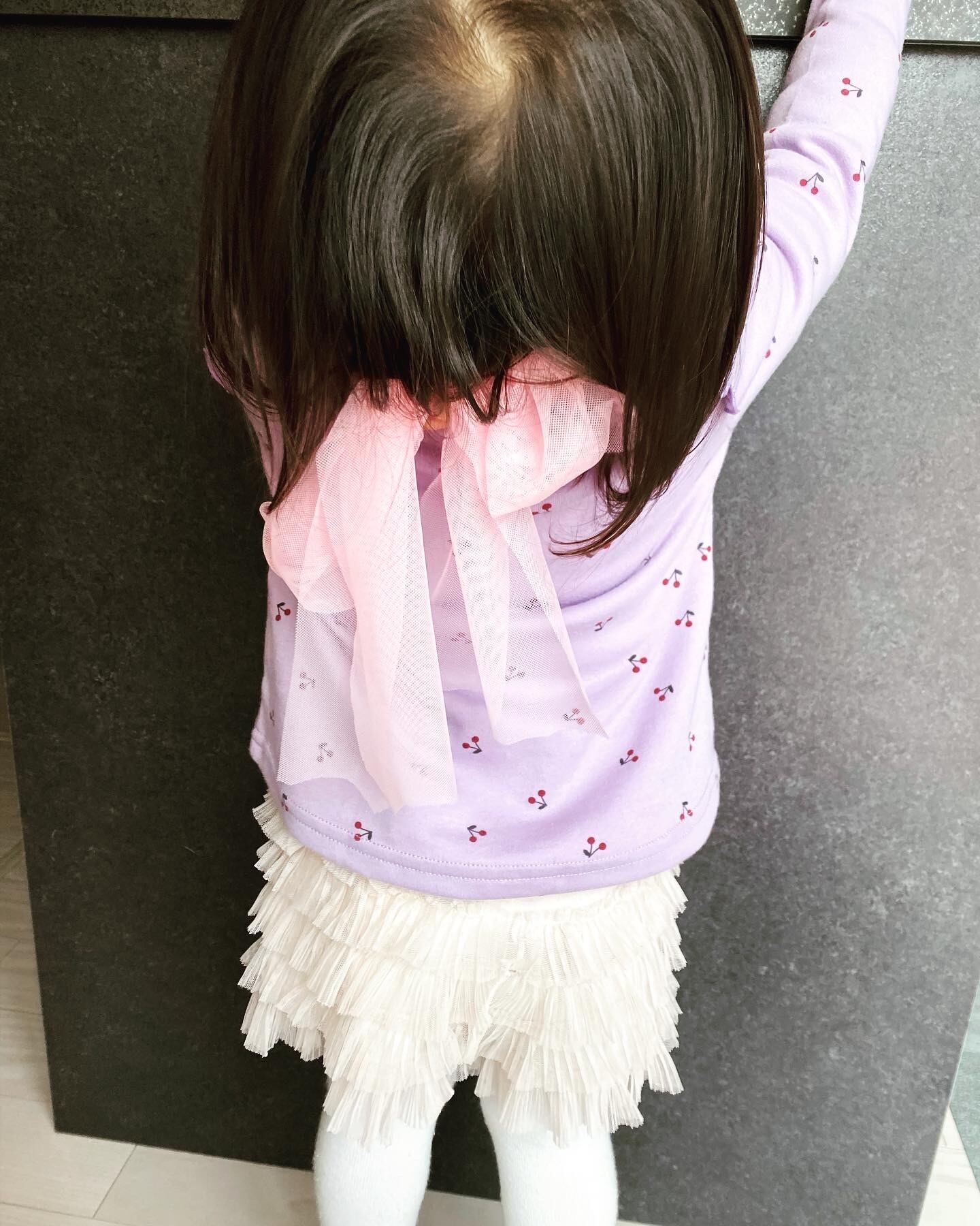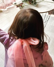 後ろにチュールリボンをつけ後ろ姿も可愛くしました。