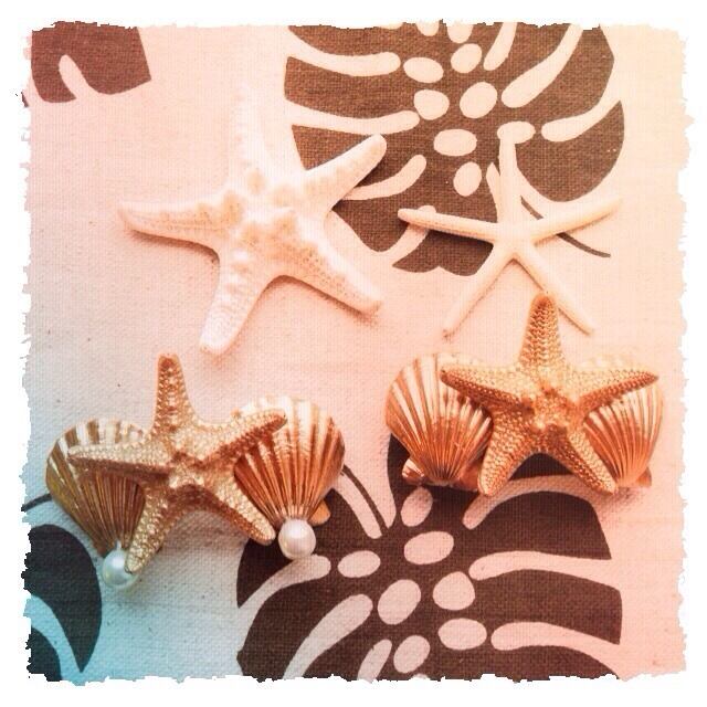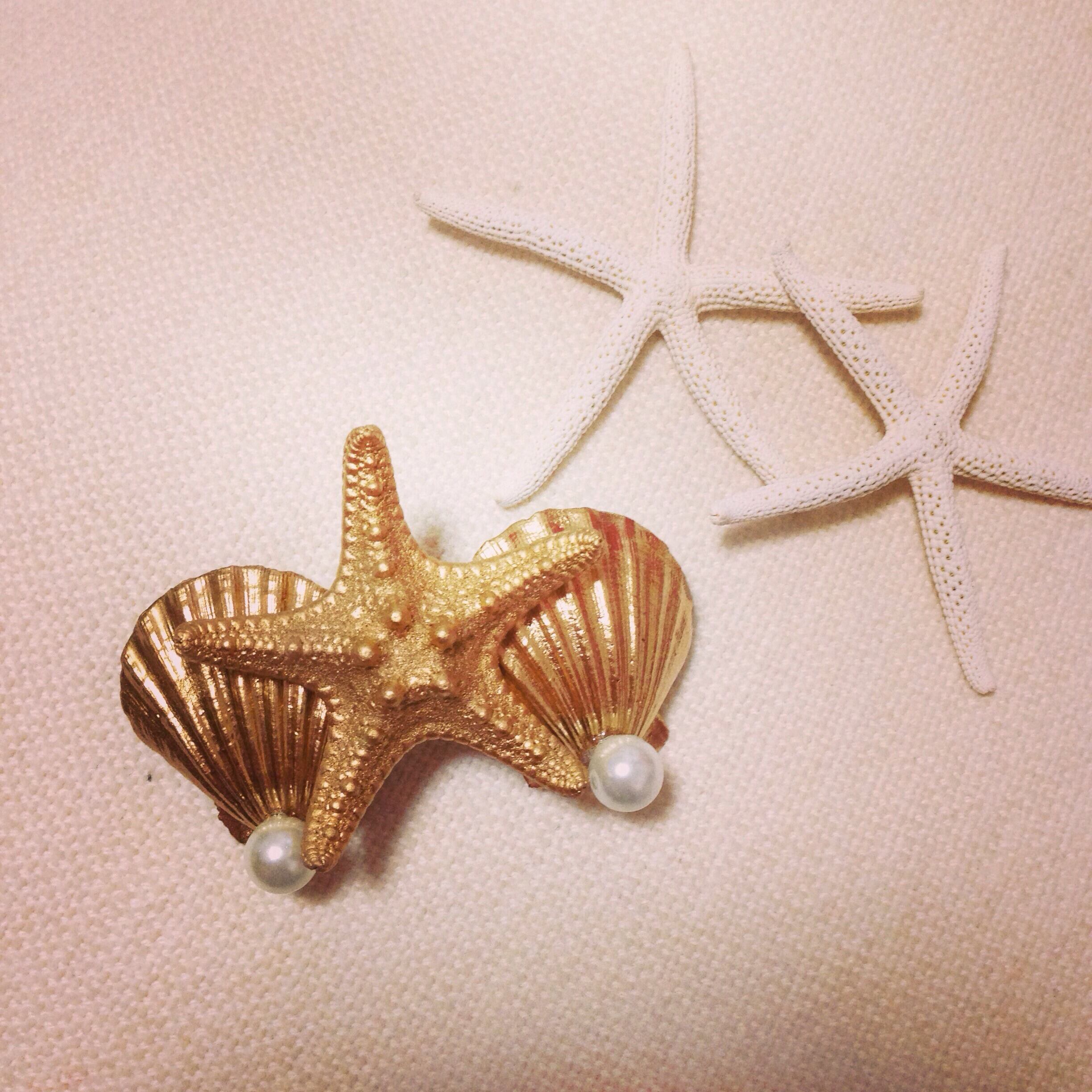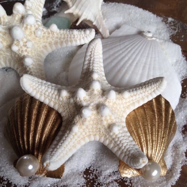 ゴールドのシェルに白色のコブヒトデを乗せました♡♡♡