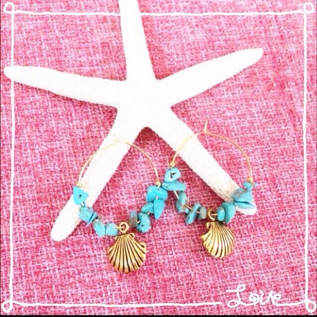 本物のターコイズの石とシェルのピアスです♡