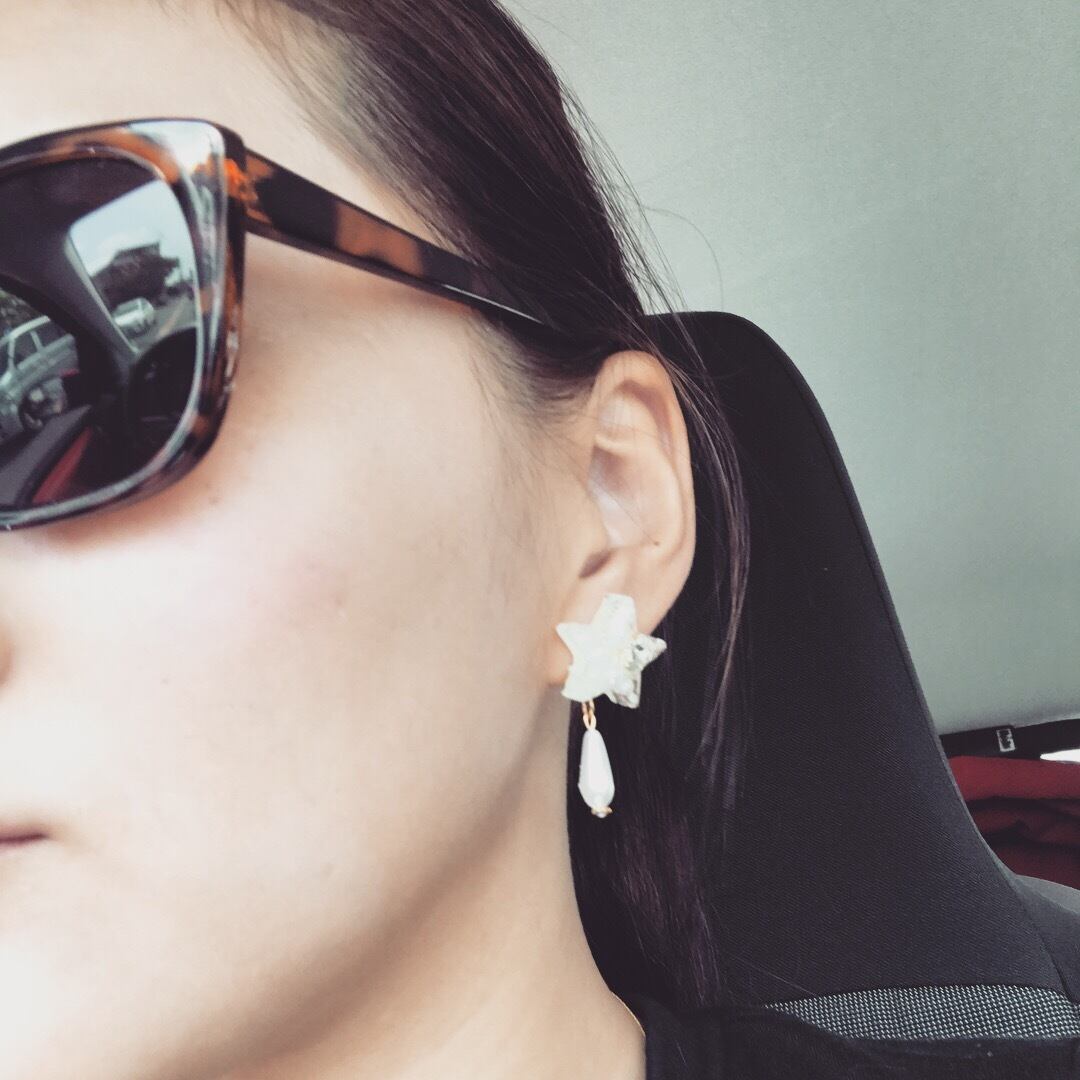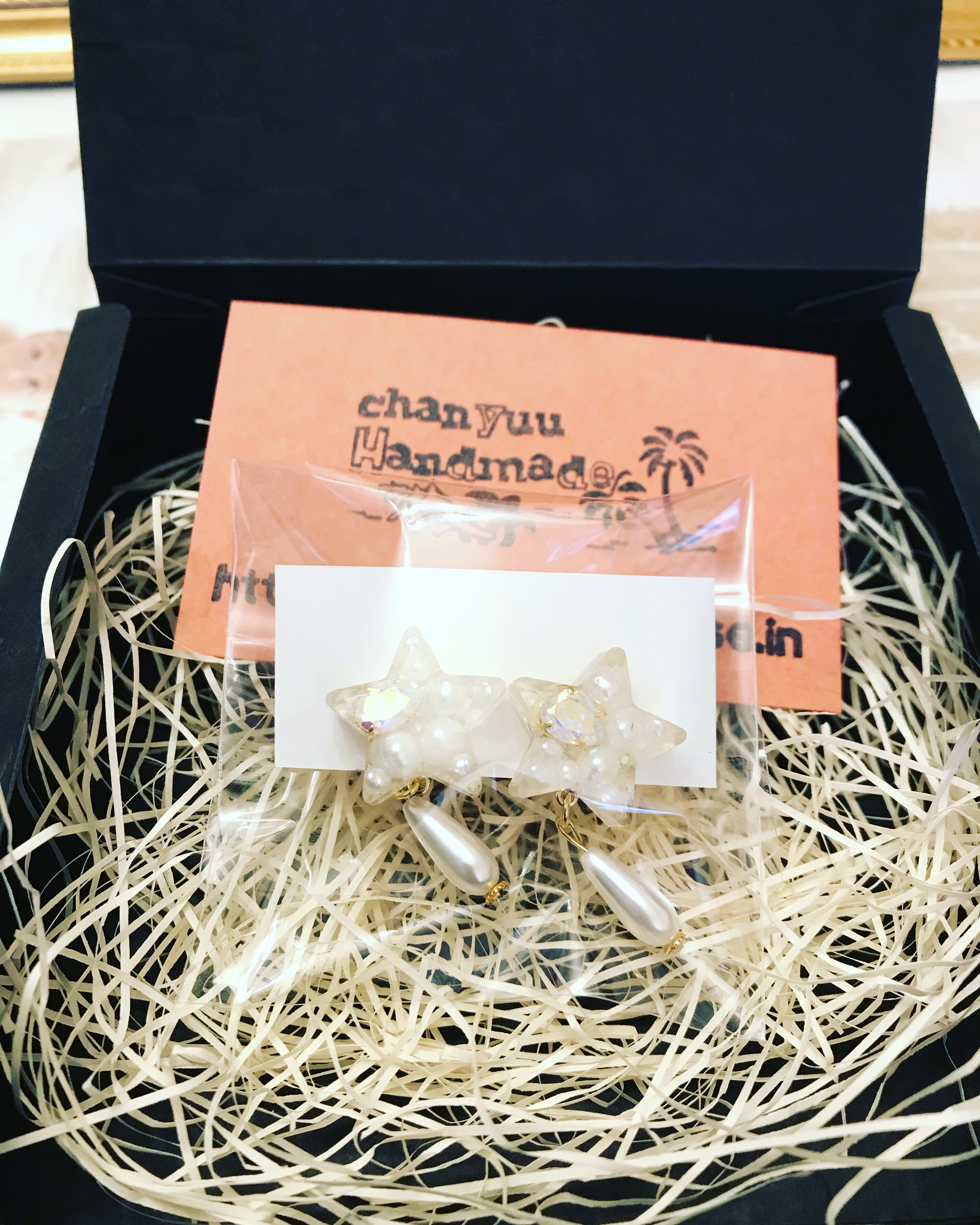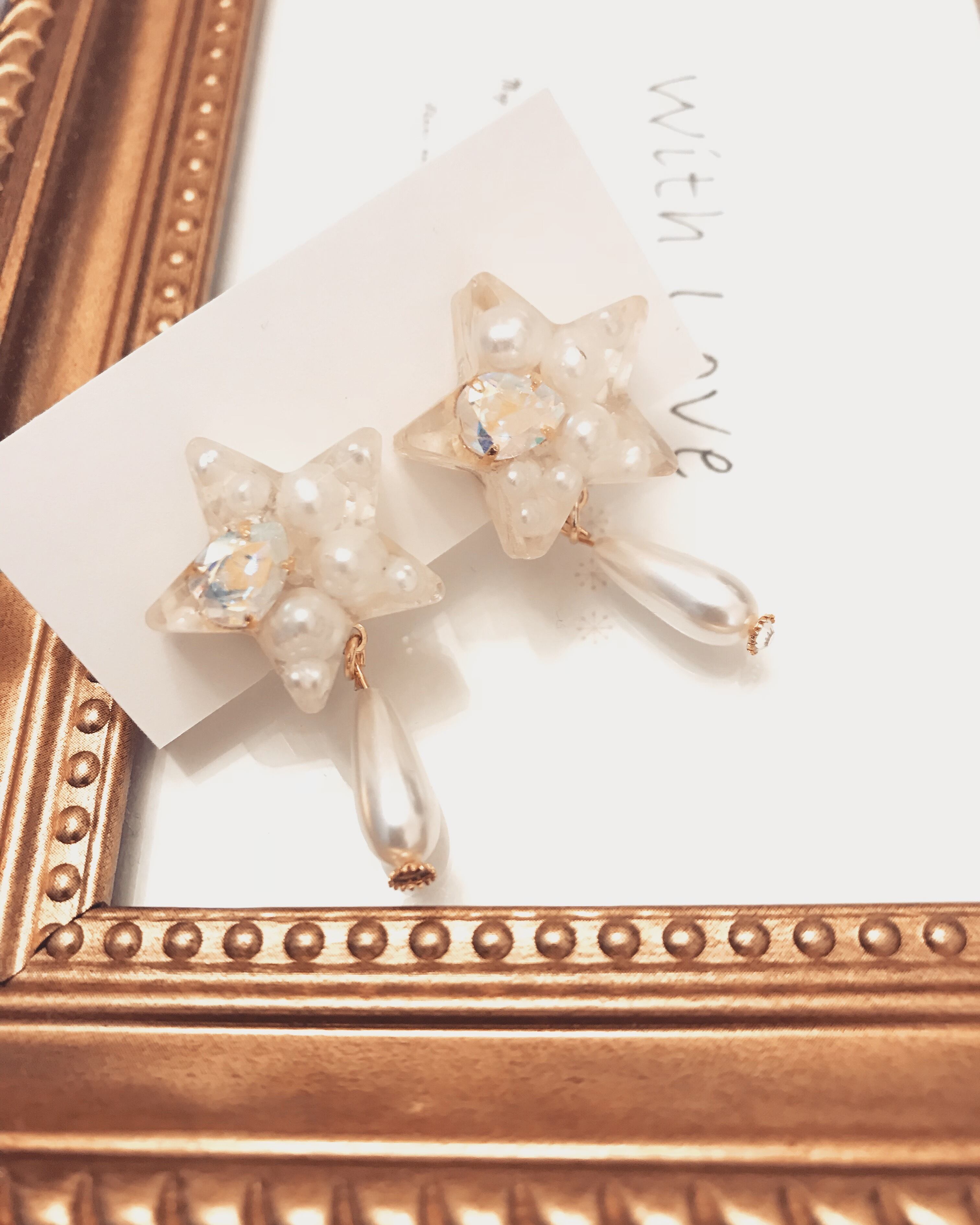 スターの中にパール、高級スワロフスキーを詰め込み、パールをあしらいました。